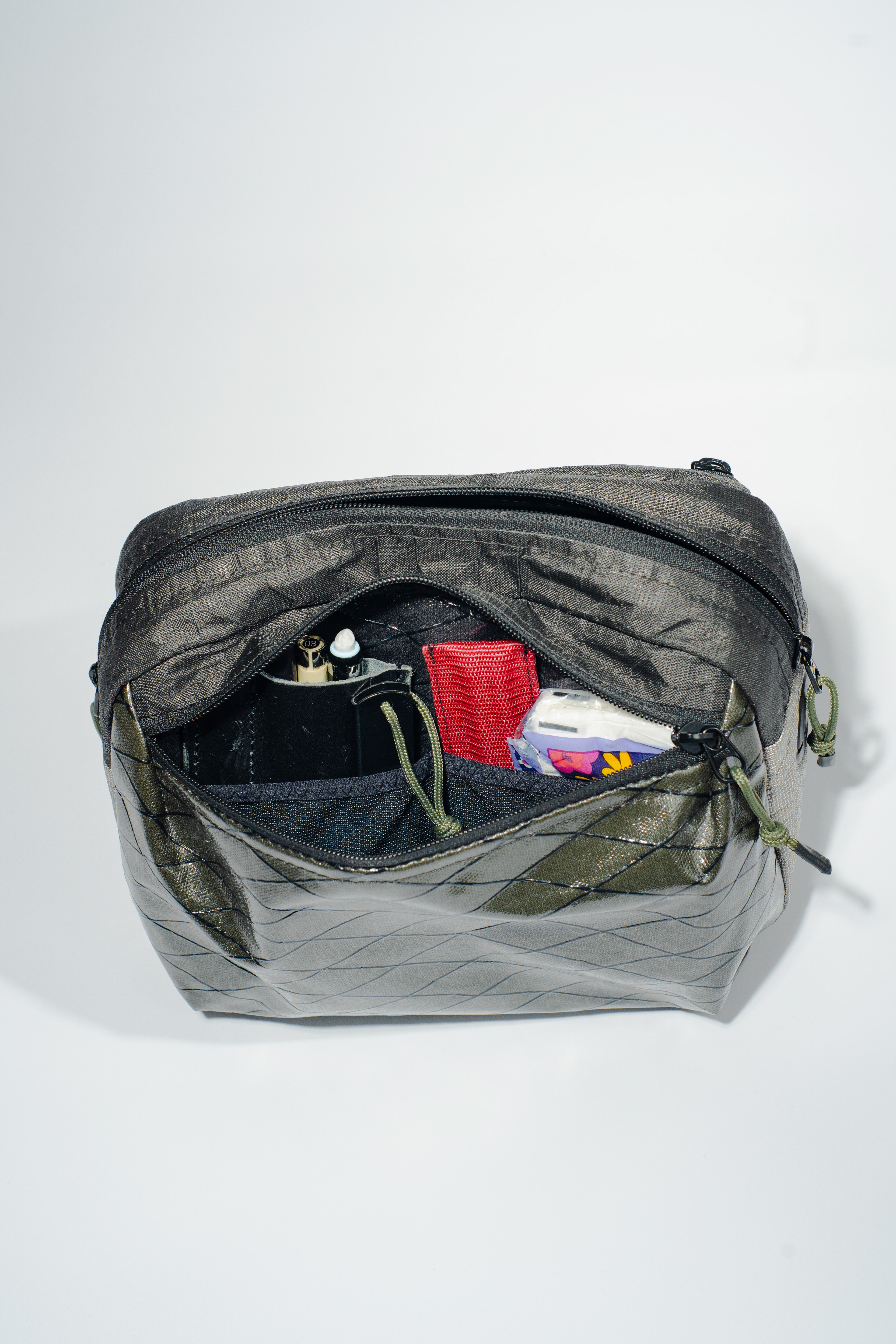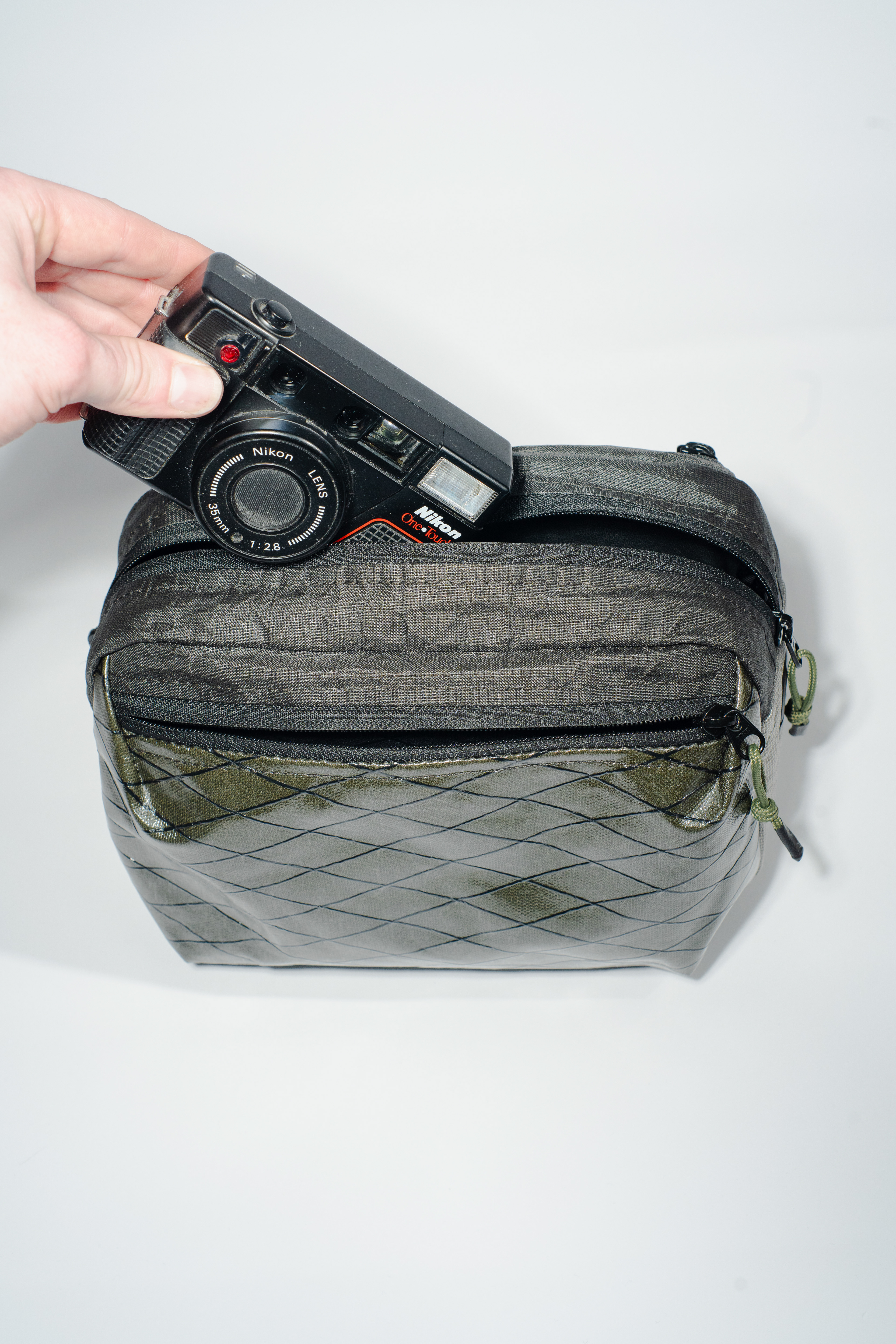 It was designed with several functions in mind. I wanted it to have a snag proof exterior so that it could also be used as a storage cube or bag organizer when stored in a larger bag. I also wanted the ability to use it as a hip pack.