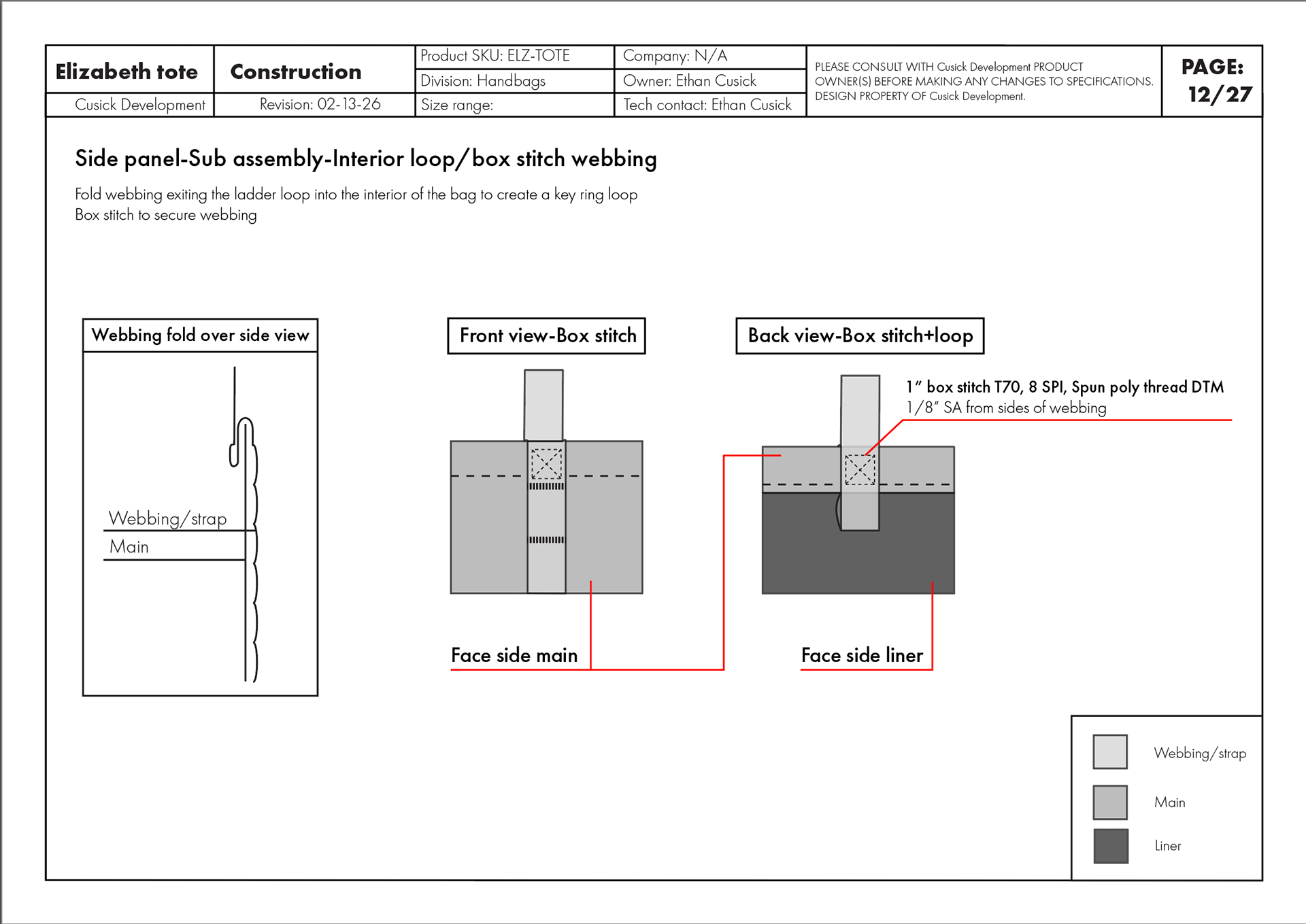 Tech pack was created including: