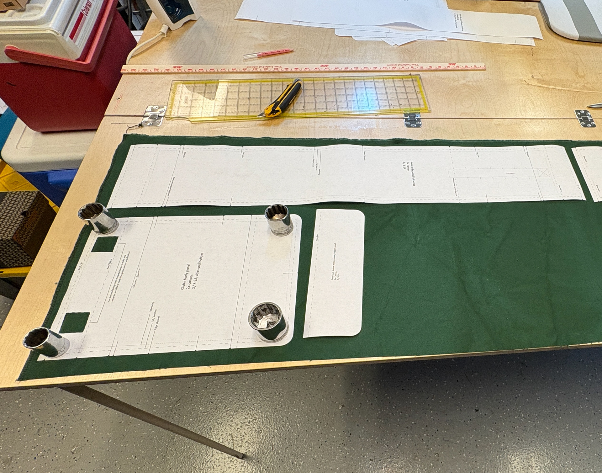 - How and where to place interfacing to allow for appropriate stiffness (ex. stopping interfacing 1" below top hem stitching to allow minimal resistance pulling magnets apart when closed)